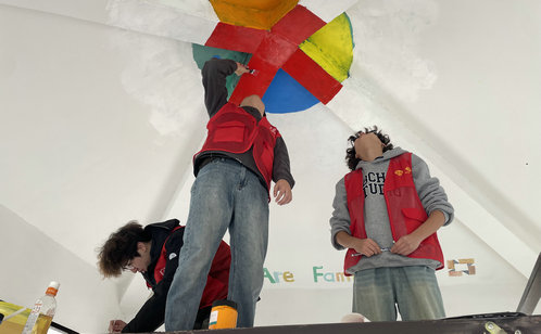 The collaboration represents a significant achievement in the community’s consistent endeavor to provide young talents with a good place to live. It was in a routine patrol that several community workers discovered the peeling paint on the pavilion due to long-term exposure to wind and rain. The community asked the school for help and the volunteers arrived soon.