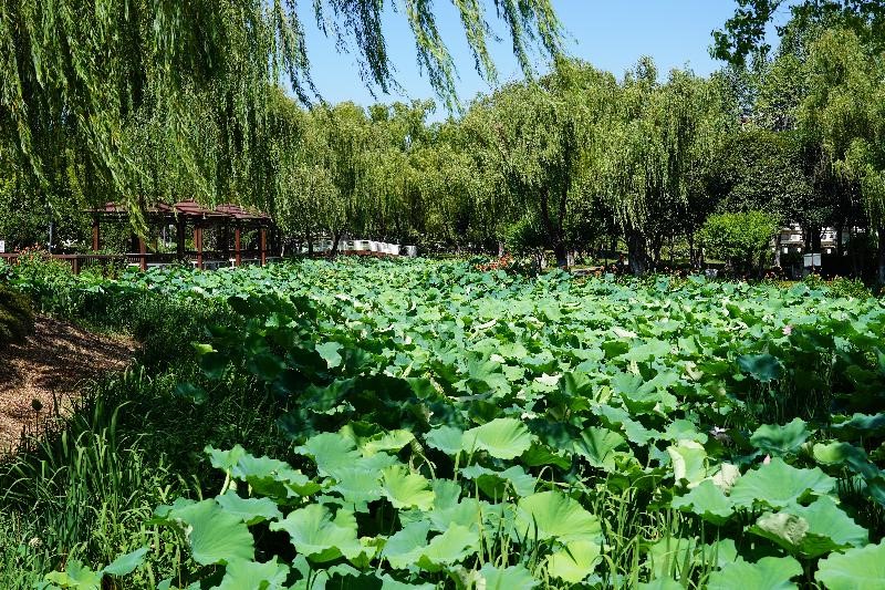 The Xianying Park is a good place to enjoy water lilies which, unfolding across the emerald leaves, look like graceful ladies in gorgeous red, pink, white or yellow dresses.