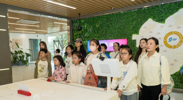 活動伊始,家長與小朋友們一同走進“繡美園區”城市管理實踐基地,在秀麗的自然風光中認真傾聽工作人員的現場講解。在講解過程中,家長和小朋友們還觀看了城市維護“十二時辰”相關紀錄短片,全方位了解到園區城市管理業態與城市管理工作的精細化成效。參觀過程中,不同家庭間不時交流自己的感受、分享自身對城市管理的意見,現場氛圍溫馨融洽。