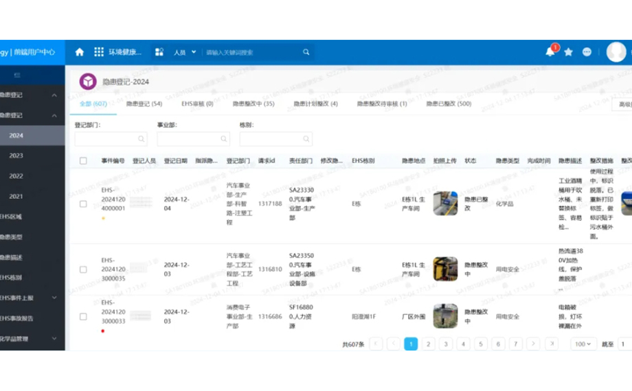 自2021年起,為便于全體員工反饋安全隱患,星諾奇上線隱患登記系統(tǒng),員工在線上可以直接上報隱患。同時,還能通過系統(tǒng)在線學(xué)習(xí)常見隱患圖示、查閱EHS部門日常安全檢查臺賬及自己報送隱患的后續(xù)閉環(huán)情況。4年間,隱患登記系統(tǒng)持續(xù)更新優(yōu)化,期間維護了近100條適用于工廠的標準隱患圖示和隱患描述,極大地提高了員工隱患提報精準度,使得企業(yè)風(fēng)險管控水平大大提升。