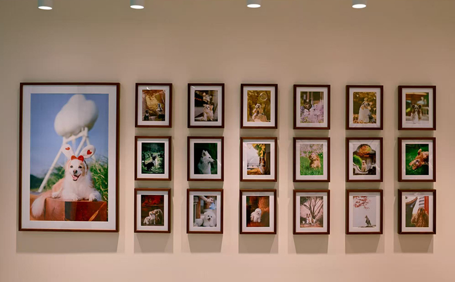 不同于“初二家”的萌趣溫馨,隔壁的“芒果寵物攝影”則是滿滿的文藝范兒和“ins風(fēng)”,店內(nèi)的墻上掛滿了毛孩子們在各地撒歡的藝術(shù)寫真,內(nèi)景棚也根據(jù)不同主題布置得十分精美。“我們的攝影師擁有豐富的寵物拍攝經(jīng)驗(yàn),并且會基于每只寵物的習(xí)性進(jìn)行引導(dǎo)拍攝。”品牌主理人蝦仁認(rèn)為,家長與毛孩子相處的每一個(gè)瞬間都是值得被記錄的幸福時(shí)刻:“我們想用影像記錄下毛孩子們的美好。”