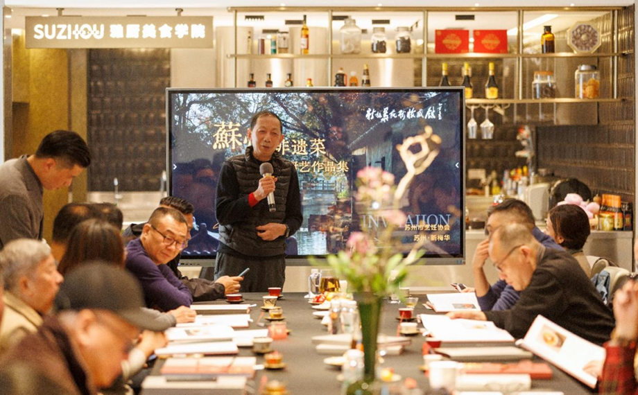 文化是蟹宴的靈魂,而蔣洪則是行走的“美食文化密碼本”。資深飲食文化學(xué)者、蘇州江南美食文化基金會(huì)顧問、蘇州市烹飪協(xié)會(huì)飲食文化研究專委會(huì)主任、吳越美食推進(jìn)會(huì)創(chuàng)始會(huì)長(zhǎng)……這些頭銜不僅是多年探索吳地飲食文化的印跡,更是代表了業(yè)內(nèi)對(duì)他的認(rèn)可和尊敬。堆滿他辦公室的泛黃古籍除了是挖掘“江南運(yùn)河宴”和“吳江十二鮮”等傳統(tǒng)宴席的“尋寶圖”,也早已化為他腦海中的“美食活字典”。