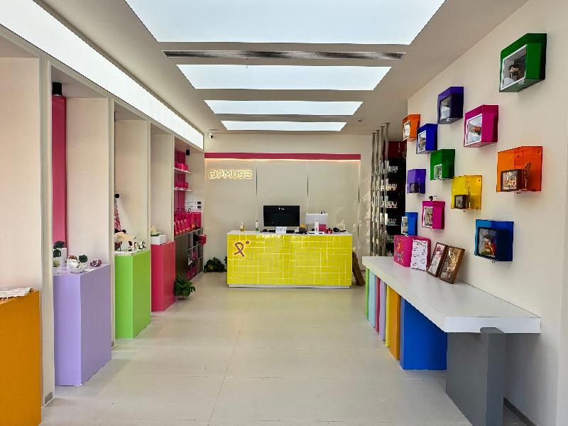 在重云巷入口不遠(yuǎn)處,采用多巴胺配色裝修的DPMUSE潮玩商店十分抓人眼球。這是一個(gè)從日常熱愛和青年態(tài)度中生長出來的品牌,它的名字也承載著雙重內(nèi)核——DualPassion(多重?zé)釔郏┡cDramaParadise(玩心樂園)。“我們通過色彩的搭配、大膽的設(shè)計(jì),將抽象的‘熱愛’具象化,使產(chǎn)品不僅是物品,更是承載情感與記憶的‘關(guān)系禮物’——無論是運(yùn)動(dòng)搭子、二次元同好,還是鏟屎官社群,都能在這里找到屬于自己圈層的身份符號(hào)。”DPMUSE主理人朱逸琳介紹道。