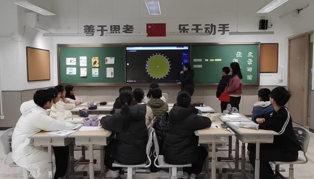 星灣學校屠鈺老師的《圓窗探徑》帶領學生解鎖蘇州園林中的圓之奧秘。屠老師從花窗的圓弧構造中回顧圓心、弦、圓周角等圓的核心概念,循著“觀察—探究—測量”的路徑,巧用垂徑定理、90°圓周角性質等知識破解圓弧半徑測量難題;通過小組合作實測海棠花窗四段圓弧的半徑,讓抽象的幾何定理在動手實踐中落地。課堂融合觀察、推理與實操,讓冰冷的數學知識在園林花窗的古典之美中煥發生機,既感受傳統園林的匠心巧思,又體悟數學的實用價值,真正實現“以景激趣,以知解惑”。